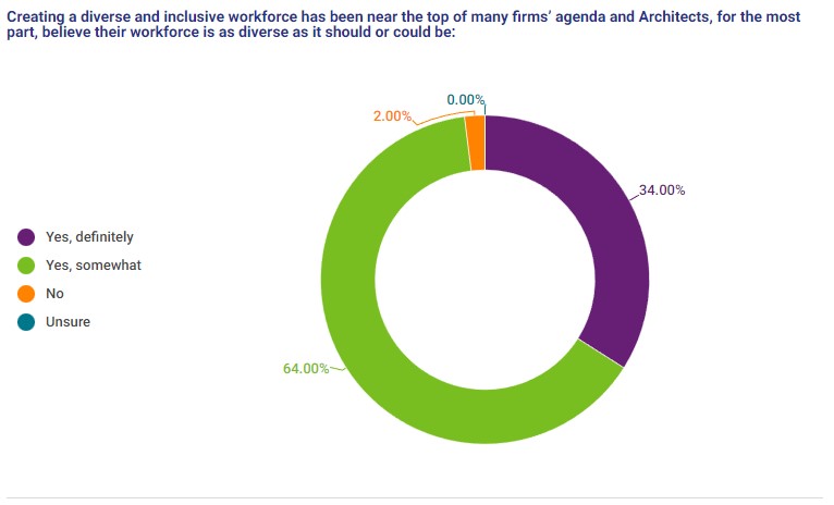 Architects are also convinced about the proven creative and associated financial benefits of a diverse workforce with 92% of survey participants agreeing.