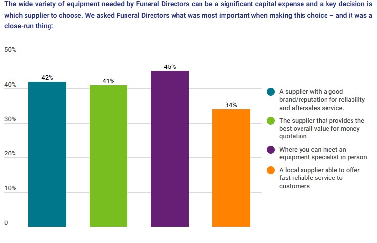Despite the skills shortage being felt in many sectors, Funeral Directors are bullish about their investment plans, with a strong response to our question ‘are you considering investing in your business in the next 12 months’ – three quarters answered ‘yes’.