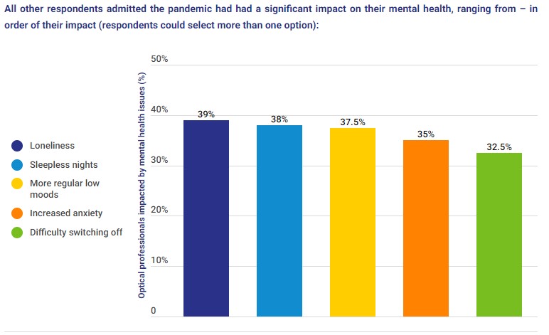 All other respondents admitted the pandemic had had a significant impact on their mental health, ranging from – in order of their impact (respondents could select more than one option):