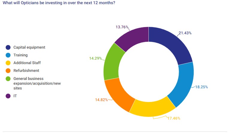 Having traded through the pandemic and come out the other side in good shape, Opticians are very positive about their investment plans, with a strong response to our question ‘are you considering investing in your business in the next 12 months’ – 87% answered ‘yes’.