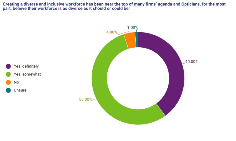 Creating a diverse and inclusive workforce has been near the top of many firms’ agenda and Opticians, for the most part, believe their workforce is as diverse as it should or could be: