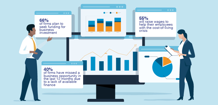 Starting with some good news, UK SMEs tell us that in spite of the multiple pressures facing them, the appetite for borrowing to invest in growth is the strongest it’s been since we started surveying business owners, with two-thirds of respondents answering ‘yes’ to the question ‘does your business plan to seek funding for business investment in the next 12 months’.